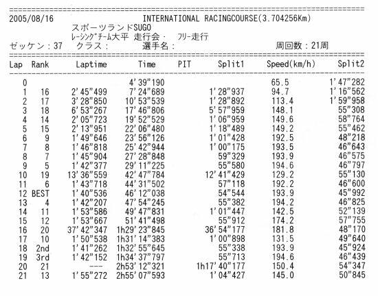 | レーシングチーム大平走行会(4h) |
